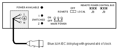 - Requires a Blue, IEC 309, 2-Pole, 3-Wire, 32A, 250V AC receptacle.