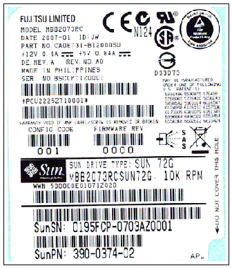 - The Sun model number on the serial number label is MBB2073RCSUN72G.