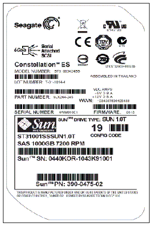 The Sun model number on the serial number label is ST31001SSSUN1.0T.