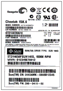 - The Sun model number on the serial number label is ST314656FSUN146G.