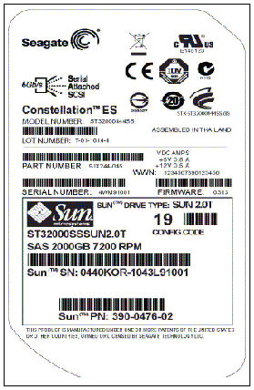 The Sun model number on the serial number label is ST32000SSSUN2.0T.