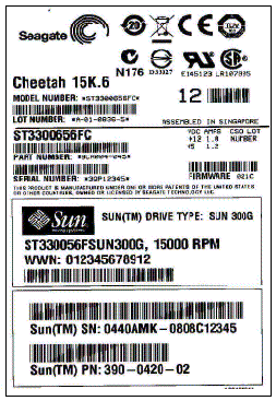 - The Sun model number on the serial number label is ST330056FSUN300G.
