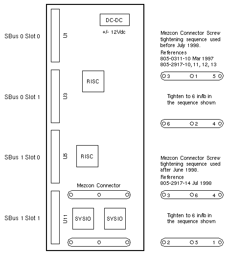 are installed in Slot 1 of SBus I/O board 501-4349. Problems may occur if