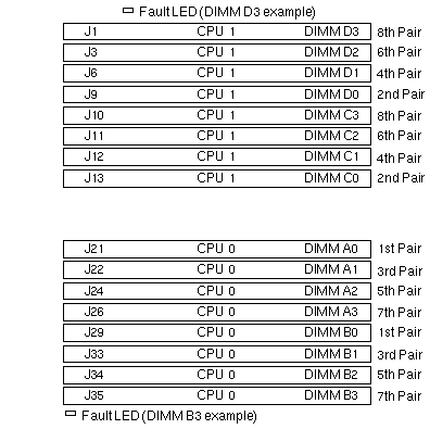 CPU 0 DIMM fault LEDs are located to the left and below each slot.