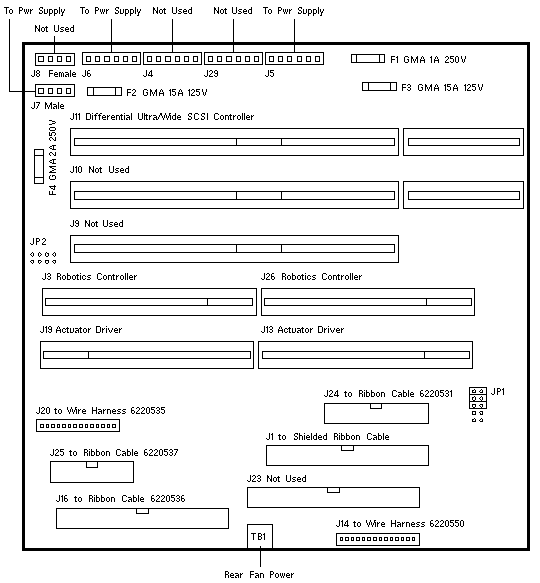 - Connector J1 is covered by a 10-Pin plug.