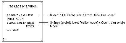 Note: Intel processors are not labeled with the Intel or Sun part number.
