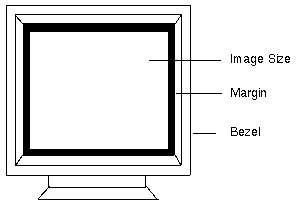 CRT Monitor and Image SizeMonitor size is the diagonal dimension of the CRT or the diagonal dimension of the CRT phosphor coating. The image size of monitors may not be reflected in the monitor size listed in sales documents or price lists. Image size is the horizontal and vertical dimension of the active display. The image size, or active display, is smaller than the CRT, Bezel, and Margin. Sun Monitor Engineering Specifications define the horizontal and vertical dimensions of the nominal image size listed in this section. The diagonal dimensions listed in this section are calculated from the horizontal and vertical dimensions and do not take into account CRT curvature. The dimensions of the 19" Premium Color CRT are: