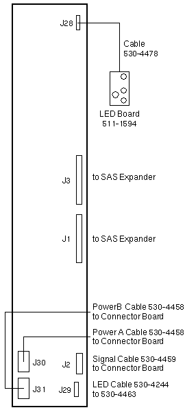 - 24-Slot Backplane connectors J30 and J31 are designated Power A and Power B.