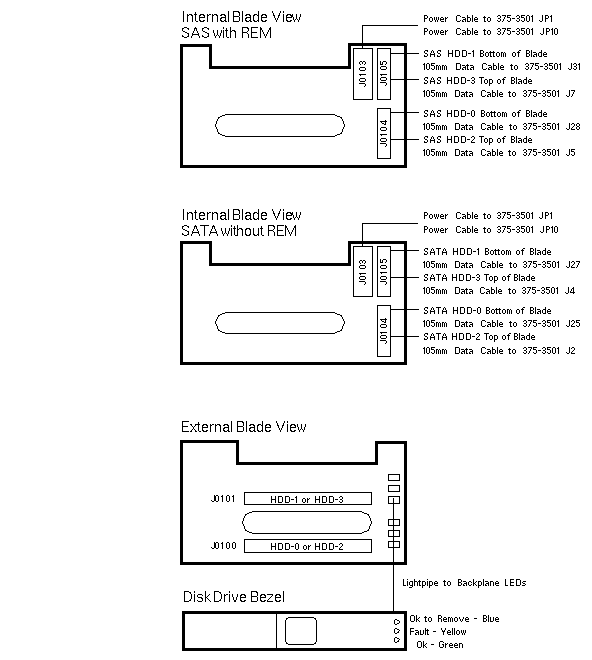 - Disk Backplane Data Cables and Power Cables do not have Sun part numbers.