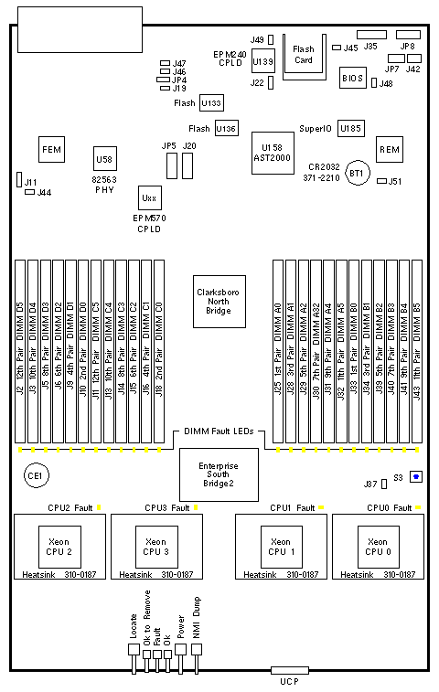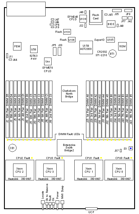 - Press Fault Remind button S3 to illuminate the CPU and DIMM fault LEDs.