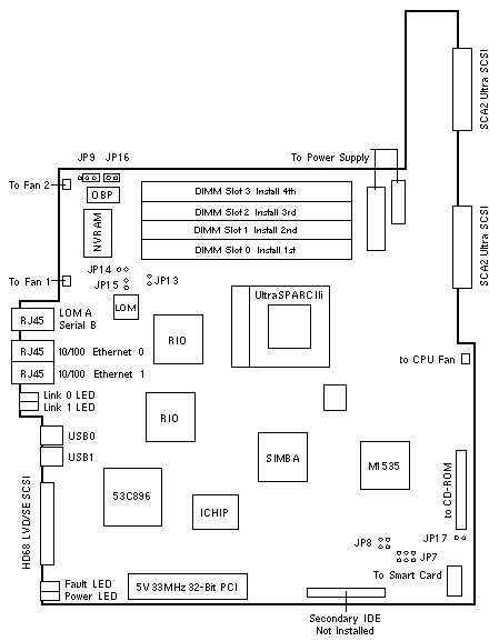 - Each DIMM slot addresses 1GB with >=550MHz UltraSPARC IIi.