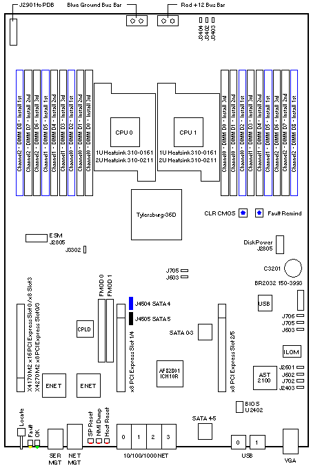 - Install the first three DIMMs in CPU0 and CPU1 slots D8, D5, and D2.