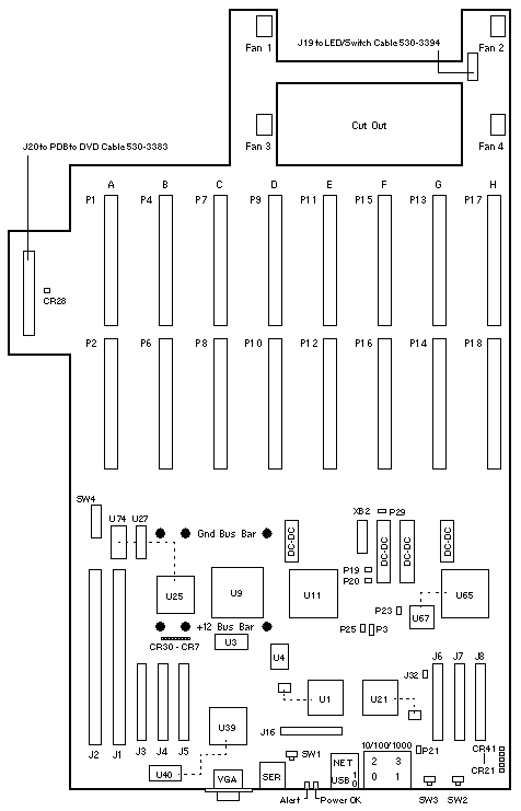 Install in A, B, D, E, F, and H. Install a CPU Filler board in