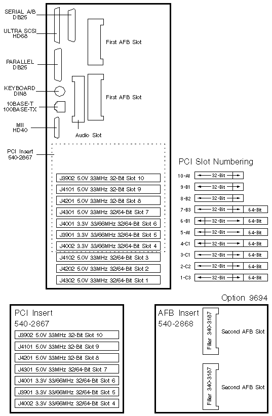 - Three PCI Slots are available when the AFB Insert is installed.