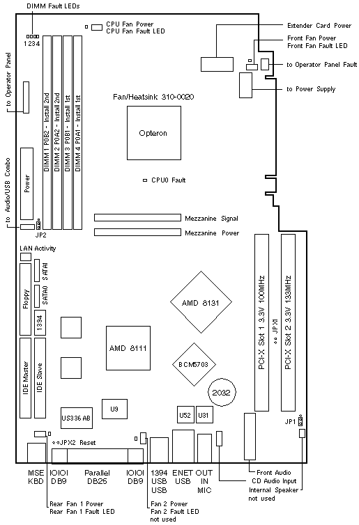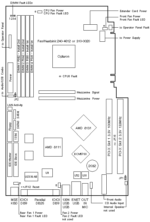 CPU/Memory Mezzanine, Fan/Heatsink, Opteron CPU, and System Board.