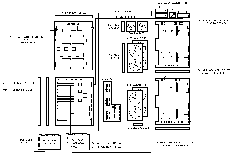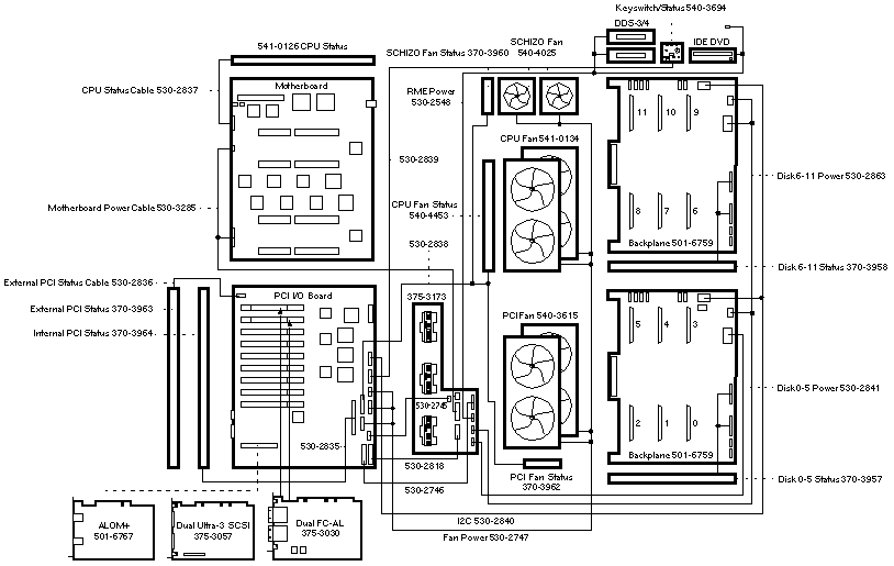 Sun Fire V890 Wiring Diagram - FC-AL and SCSI Data