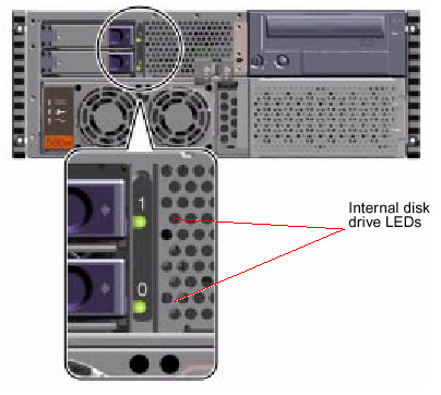 open. The following figure shows the LEDs on the power supply in bay 0.