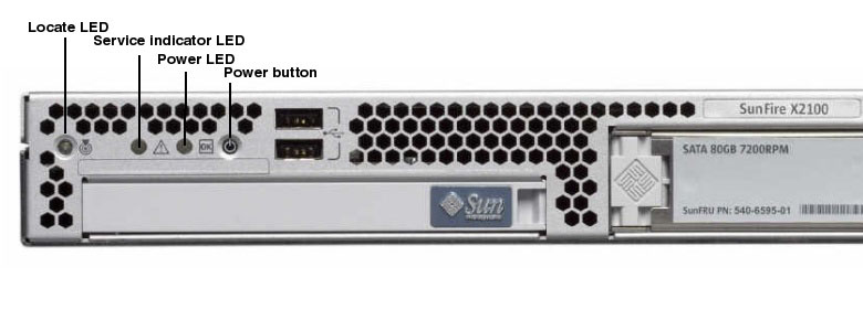 Turns the system on and off. This button is recessed to prevent accidental server power-off.