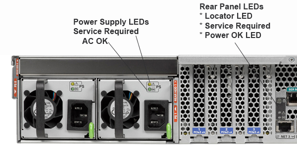 Required LED are also lit if the system detects a power supply fault. |