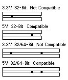 PCI InformationPCI Local BusPCI Mechanical SpecificationPCI boards have two basic form factors, standard or long length (312 mm) and short length (174.63 mm). Variable height short length (119-167 mm) boards are also available. Edge connectors are keyed for 3.3V signaling, 5V signaling, or universal signaling. Universal boards are designed to fit in 3.3V or 5V connectors.The 32-Bit, 124 pin PCI connector has 120 signal pins and 4 key pins. The 32-Bit connector defines the system signaling as 3.3V or 5V. An optional 64-Bit extension is built into the same connector molding extending the number of pins to 184. A 32-Bit PCI board identifies itself for 32-Bit transfers when it is installed in a 32-Bit or 64-Bit connector. A 32-Bit PCI board can be installed in either a 32-Bit or 64-Bit connector. A 64-Bit PCI board identifies itself for 32-Bit transfers when it is installed in a 32-Bit connector. A 64-Bit PCI board identifies itself for 64-Bit transfers when it is installed in a 64-Bit connector. The signals that enable 64-bit operation are REQ64 and ACK64. They are Side A Pin-60 and Side B Pin-60 of the 32-bit connector. 64-Bit PCI boards do not fit into Ultra 80, Slot 4. 64-Bit PCI boards do not fit into Slots 9 and 10 on A20/A25 System Boards 501-5028, 501-2996, and 501-5270. PCI Electrical SpecificationThe PCI specification provides for 3.3V and 5V signaling. Signaling is determined by the motherboard. Signaling for a 3.3V PCI board is at 3.3V. Signaling for a 5V PCI board is at 5V. Signaling for a universal PCI board is at 3.3V or 5V.All PCI connectors require four power rails: +3.3V, +5V, +12V, and -12V. The distinction between a 3.3V and 5V PCI boards is in the signaling protocol, not the connector power rails. The maximum power allowed for a PCI board is 25 Watts from all four power rails combined. PCI Board and PCI Connector IllustrationsPCI Boards are shown with the solder side up because this is the orientation in many PCI systems including the Ultra 5 (Slots 1 and 3), Ultra 10, Ultra 30, Ultra 60, Ultra 80, Enterprise 250, and Ultra Enterprise 450.