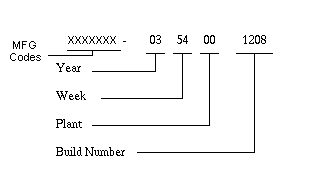 Plant locations not listed in tables below, no MFG Code information is available |