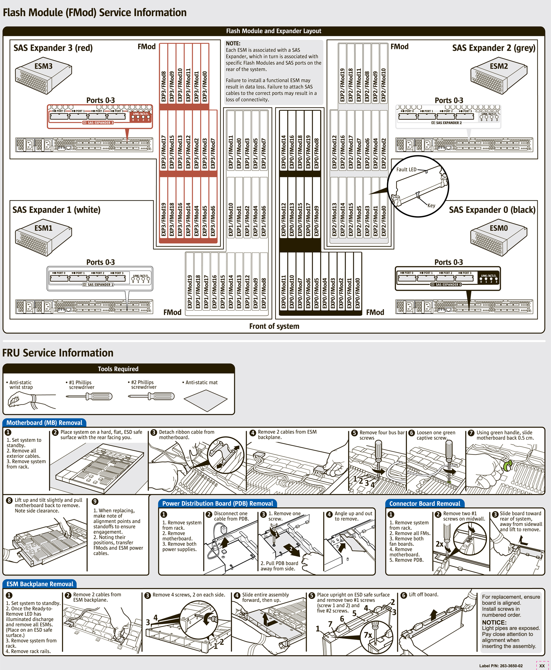 Sun Storage F5100 Flash Array - Internal Service Label ViewPlease reference FAB 1022255.1: Lightning Flash F5100 systems shipped to customers with FMod color coded connectors in domains 0 and 2 swapped.