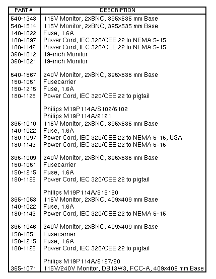 Volume II: Parts Breakdown - Monitor19-inch Greyscale CRTImage Size: 350 mm Horizontal / 273 mm Vertical / 443 mm Diagonal
