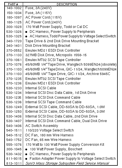 Volume II: Parts Breakdown - Option506 [327MB Disk] 507 [327MB Disk Expansion] 509 [2 327MB Disks Expansion] 510 [2 327MB Disks] 516 [327MB Disk, 60MB Tape] Mass Storage Subsystem (Sun-3 Shoebox) | ||||||||||||