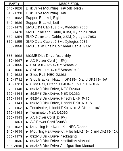 Volume II: Parts Breakdown - Option641 [1 Disk] 642 [2 Disks] 643 [3 Disks] 644 [4 Disks] 645 [Exp Disk w/o Tray] 646 [Exp Disk w Tray] 892MB SMD Disk Subsystem | ||||||||||||
