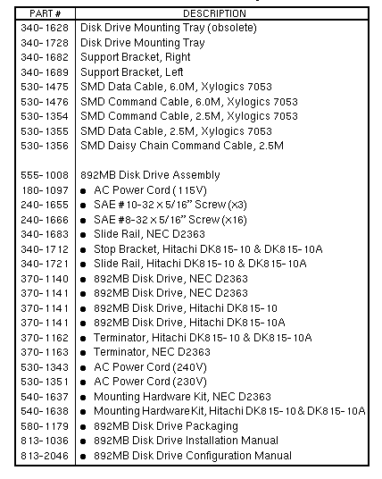 Volume II: Parts Breakdown - Option941 [1 Disk] 942 [2 Disks] 943 [3 Disks] 944 [4 Disks] 945 [Exp Disk w/o Tray] 946 [Exp Disk with Tray] 892MB SMD Disk Subsystem | ||||||||||||