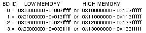 - Determines where a memory board is mapped into the 256MByte space allocated