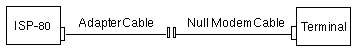 Self-test output is monitored by connecting the ISP-80 controller to a terminal set to 9600 baud, 8 data bits, no parity, and 1 stop bit. The ISP-80 Controller serial port is a 25-pin, dual in-line, header-type connector. Since Sun does not make a cable that connects the ISP-80 controller and a terminal, use an adapter cable and a null modem cable.